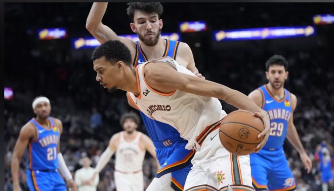 如果說(shuō)輸給黃蜂是意外,那么被圣安東尼奧馬刺“三殺” 則暴露了雷霆更深層次的問(wèn)題。首場(chǎng)比賽被馬刺以2分之差逆轉(zhuǎn),隨后第二戰(zhàn)直接以110-130慘敗20分之巨,圣誕大戰(zhàn)中,再次以102-117被馬刺擊敗,比賽從第二節(jié)開始就被馬刺牢牢掌控,全面壓制。雷霆面對(duì)馬刺,顯得毫無(wú)辦法,那種無(wú)力感正像是賽季初其余球隊(duì)面對(duì)雷霆時(shí)的感覺。更令人擔(dān)憂的是,三場(chǎng)失利中,雷霆除了亞歷山大,沒有第二人得分超過(guò)20分。